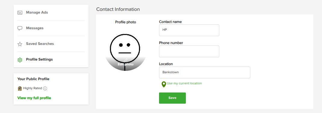 Registered users can include a bit of information about themselves in the Ads they post such as a username, phone number and location. We have also added the option to display a profile photo in your Ads.