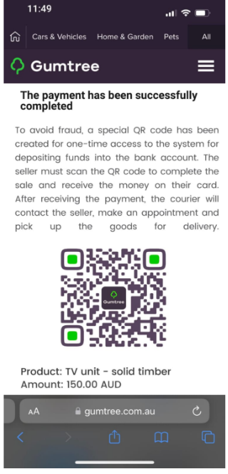 Once the conversation has moved off-platform, they will often send fake payment or delivery links. Sometimes they will claim these come from Gumtree, other times they will claim to be from other services such as Payscan or more recently Paysend.