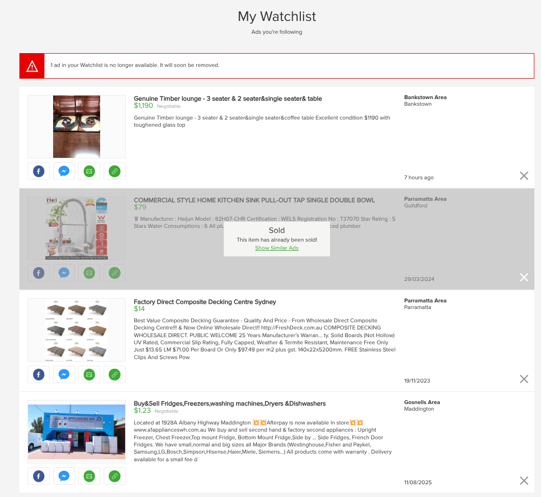 Keep track of ads you’re interested in by saving them to your Watchlist! This makes it easier to revisit, compare, and act quickly on items before they’re sold.