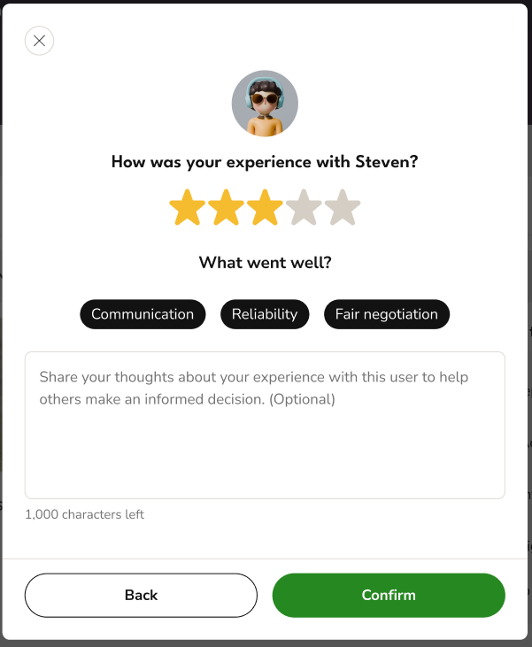 Instead of the old smiley-based system, users can now rate one another using a 5-star rating system, along with an optional written review.